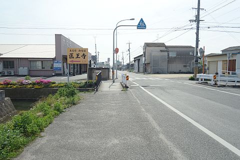 南へ33m進んで極楽寺踏切の手前(北)にある十字路を右折し、