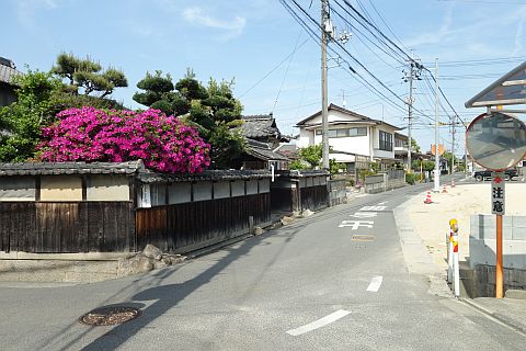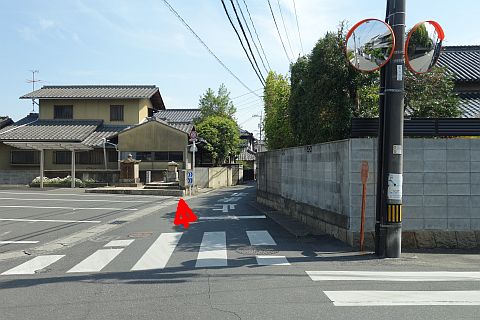 南備四国の道しるべがある十字路に戻り、左折して東北東へ305m進み、十字路を右折