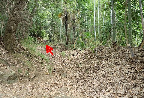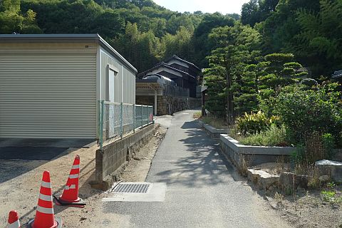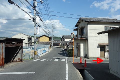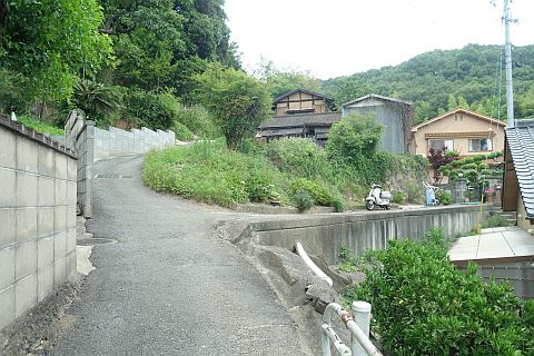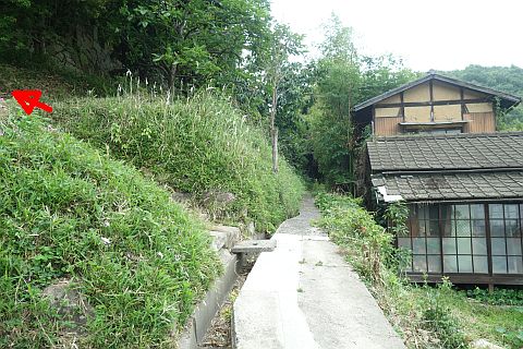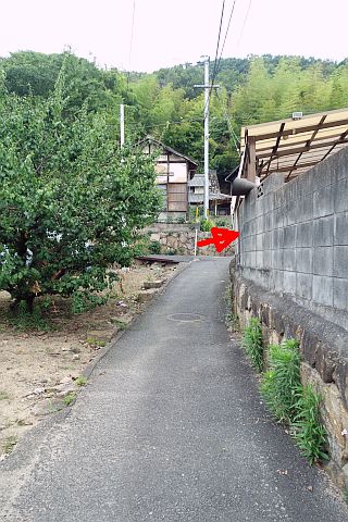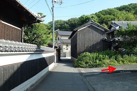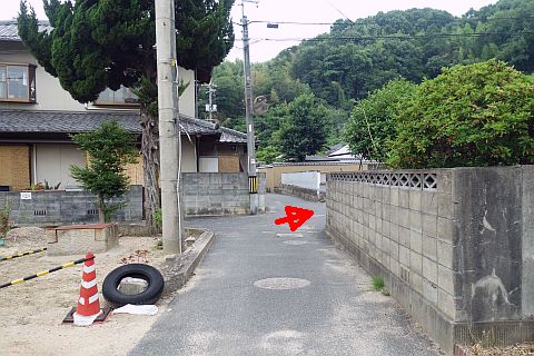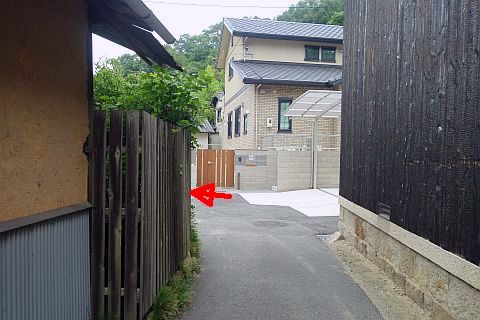 交差点の西にあるゴミステーションの横から細道を北西へ35m進む