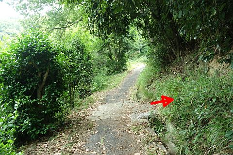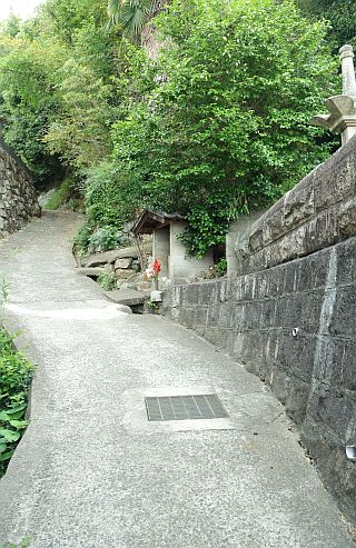 参道口に戻り、右折して南へ12m進んで左折(普通車通行困難)