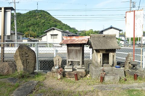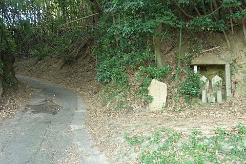 https://goo.gl/maps/6wrhQvBjJuGqkxDn8自然石地神の前に戻って西へ110m進み、細道を南西へ33m上る