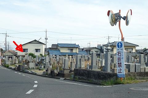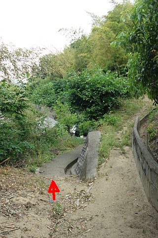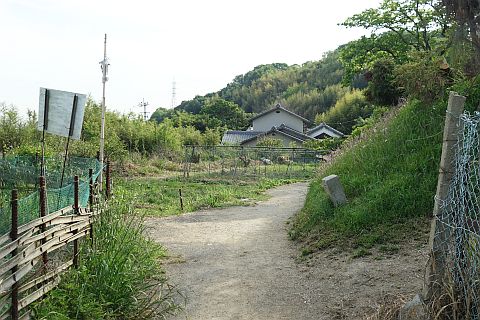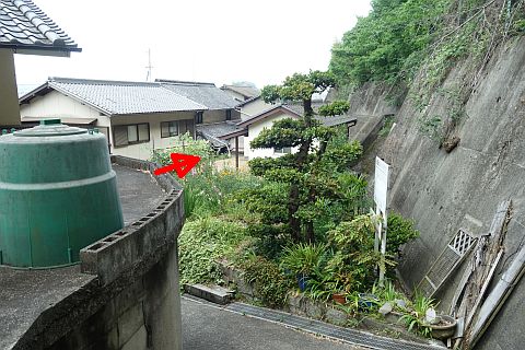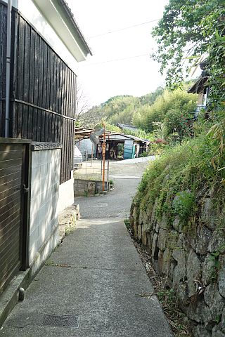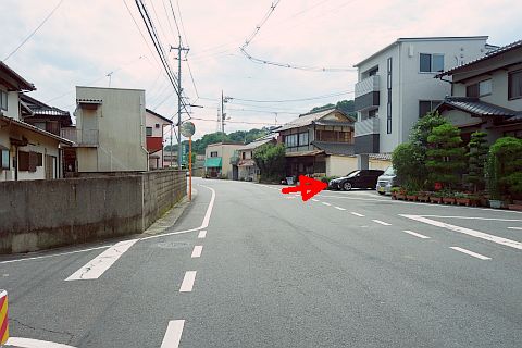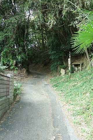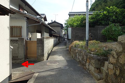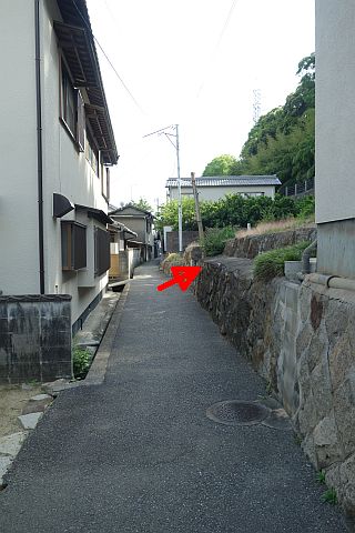 十字路を右折して細道を西へ30m、北北西へ80m程上る。