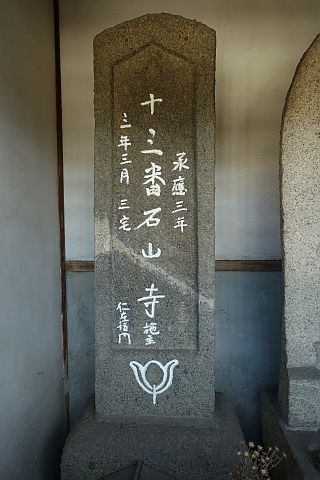 「十三番石山寺 承應三年(1654年) ◯◯◯◯ 施主 三宅 仁左衛門」