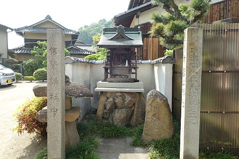 開基不詳 鎭守 稲荷社 方四尺 法善坊社 方五尺 多聞院別當也 矢柄村八幡宮