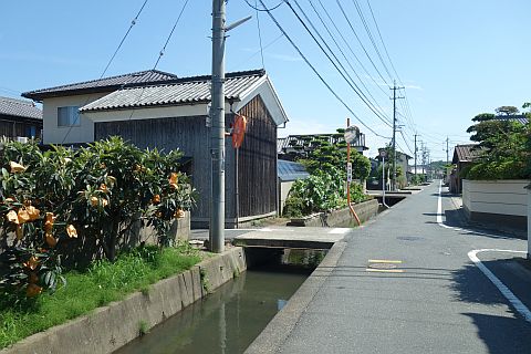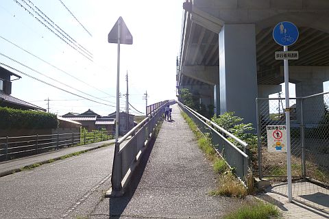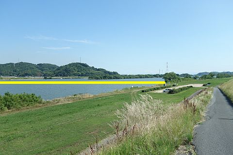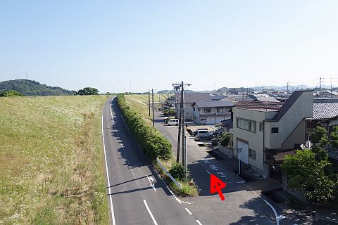 高梁川大橋西詰で左折し、土手下の道を南南西へ510m進む