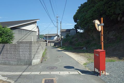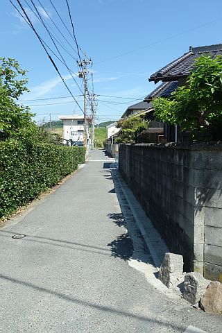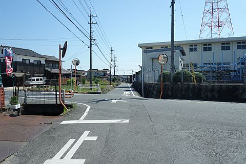 五叉路を右折して西へ78m進み、十字路を右折して南南東へ440m進む