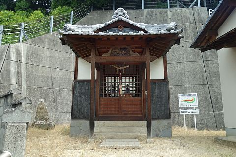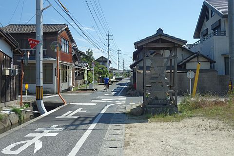橋を片島側に渡った所には河内四国39番札所と自然石地神がある