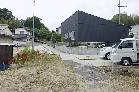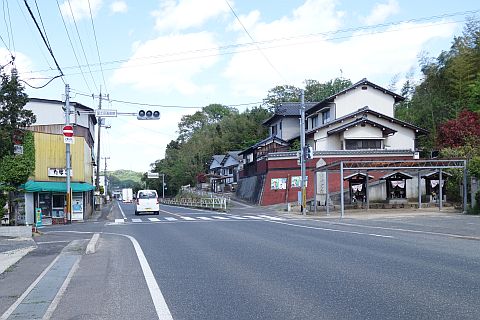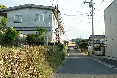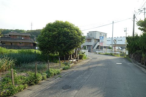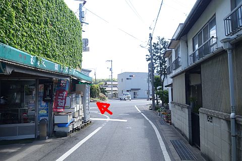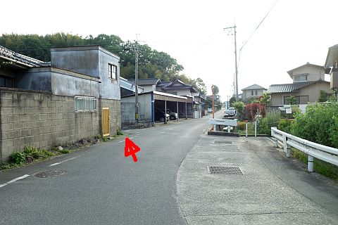 産業道路を北へ180m進み、Y字路から北北西へ90m進む