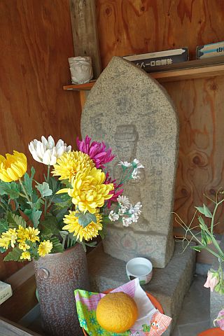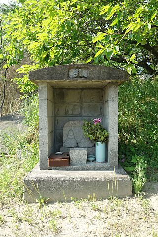 屋根に聖観世音菩薩の種子(サ)が刻まれている
