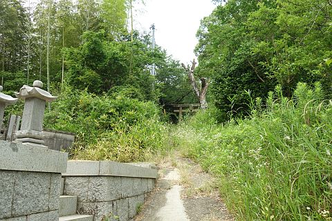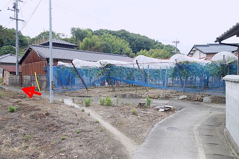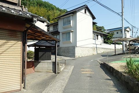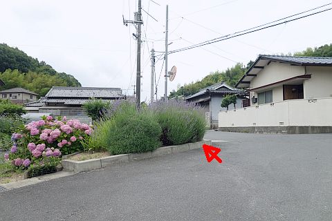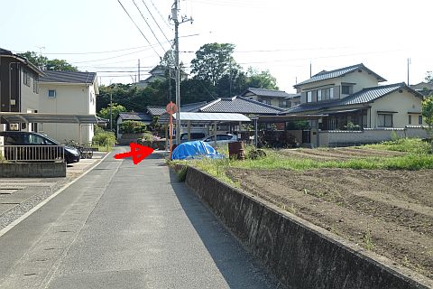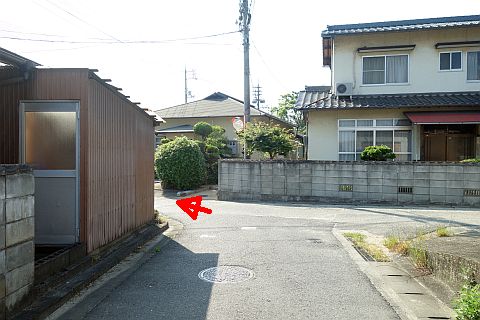井戸の後ろにある十字路を右折し、細道を西へ20m程進む