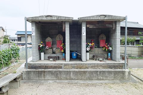 露盤あり。屋根に聖観世音菩薩の種子(サ)が刻まれている。