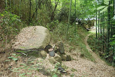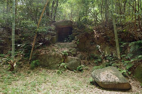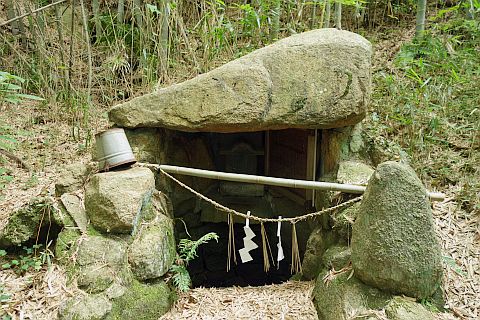 石棺の三分の一取り殘されて原形を存せり。附近に二個の古井あり。」と記されている