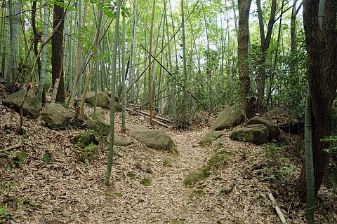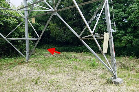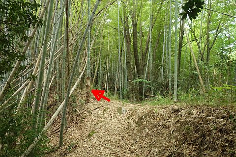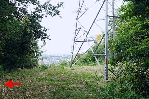 Y字路を左折し、細道(鉄塔巡視路)を南へ45m上る