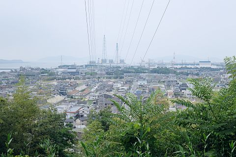 正面に中国電力玉島発電所、向かって左端に倉敷みなと大橋
