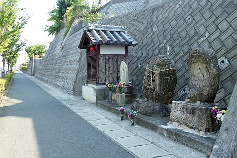 産業道路の横断歩道を渡って左折し、南へ25m進む