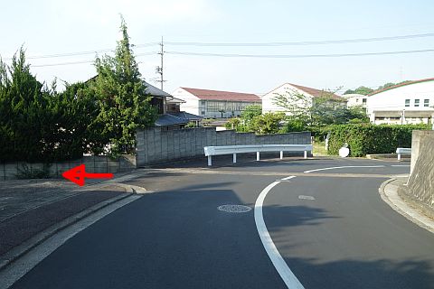 つきあたりの丁字路を右折し、北北西へ100m進む