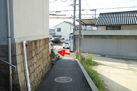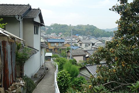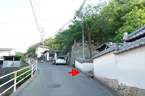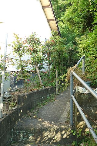 民家の横で左折し、階段を南へ50m程上る