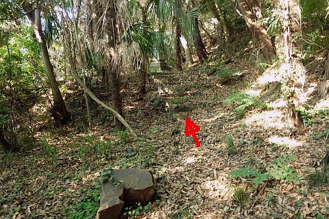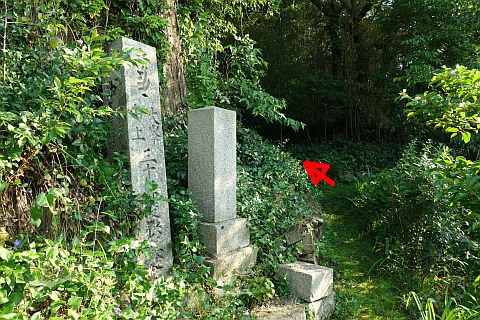 左折して竹浦共同墓地内の参道を東へ18m進む