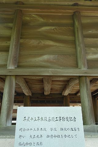本殿傾斜により近代工法による地盤改良をし、回廊及び階段を修復し