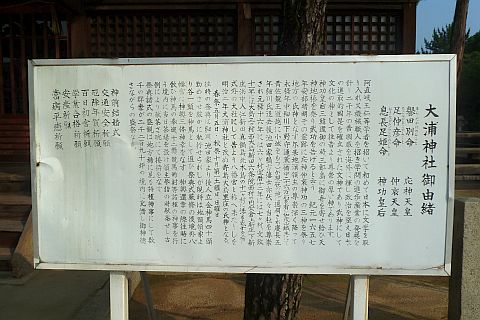 浅口郡誌(p.289 大正14年)」に「(社名)大浦神社 (祭神)應神天皇 相殿 仲哀天皇 神功皇后