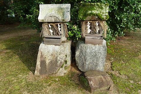 向かって左から沼名前神社、荒神社、金刀比羅神社の石祠