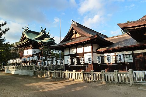 祭神は譽田別命(応神天皇)、足仲彦命(仲哀天皇)、息長足姫命(神功皇后)