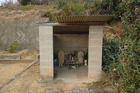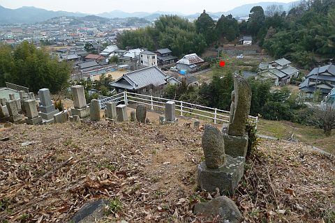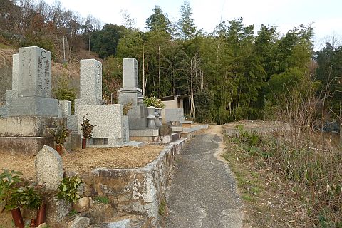 墓地の参道入り口に戻り、参道を北へ20m上り、右折して東へ10m上る