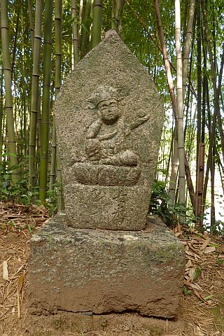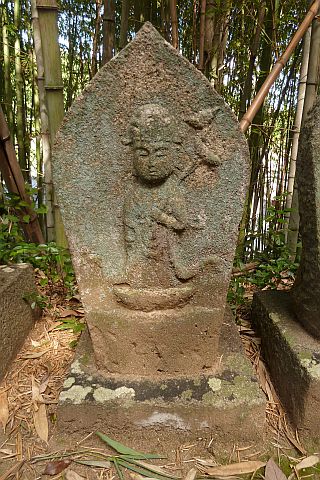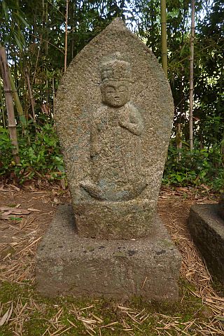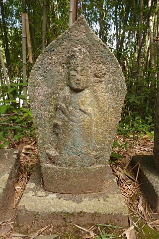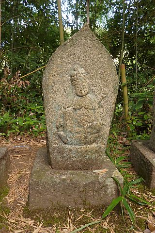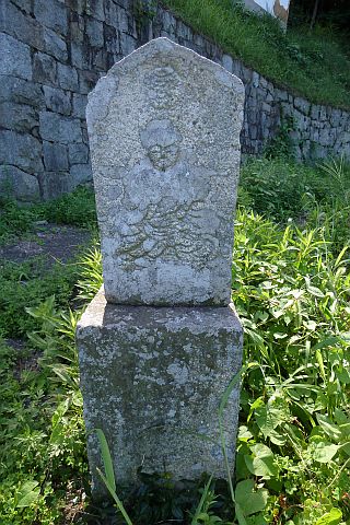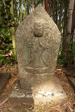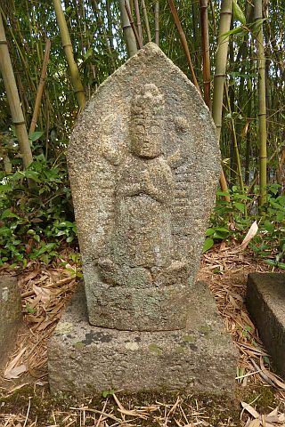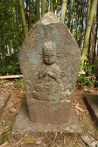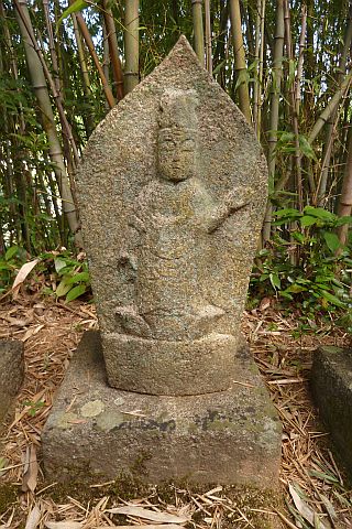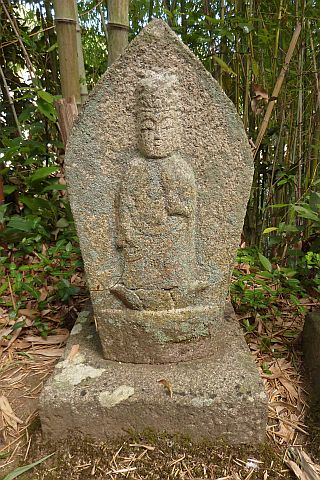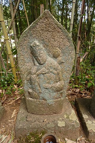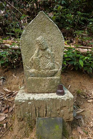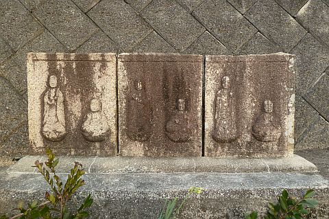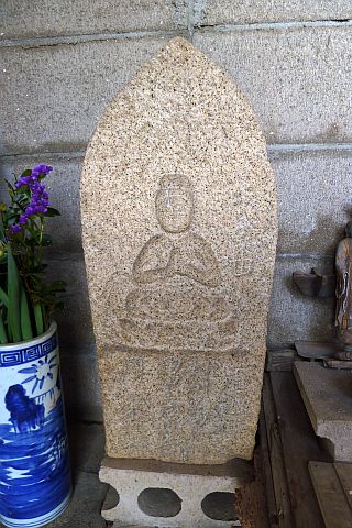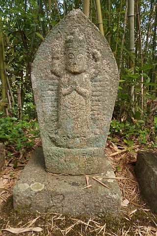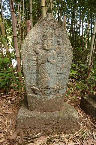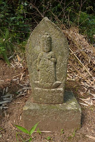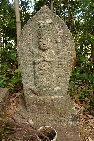 大師堂の境内にある西国観音霊場の1番札所の石仏。開創年は不明だが、施主名に