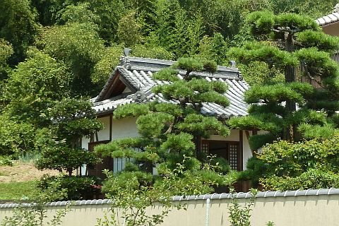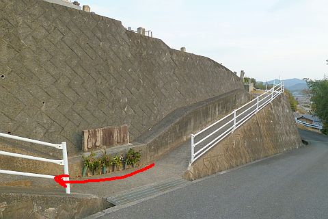 浅口市鴨方町益坂の松井地区の南にある十字路を北へ120m進む。