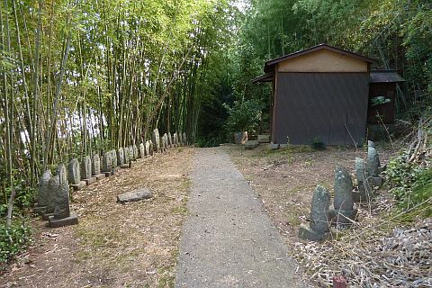千手観世音大師堂の周囲に西国三十三所観音霊場の石仏が安置されている。