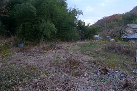 墓地の東端の竹藪の手前