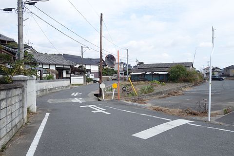 県道35号線を南南東へ590m進み、きしもと橋(道口川)を渡って南東へ104m進んで左折