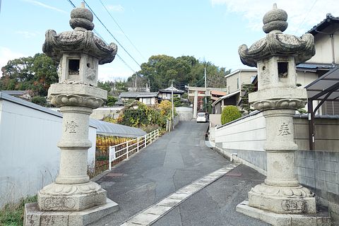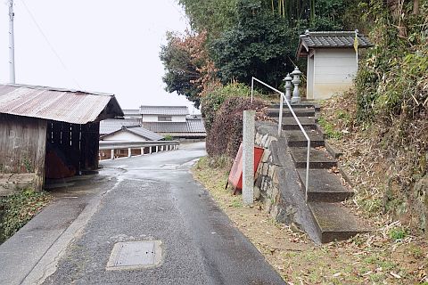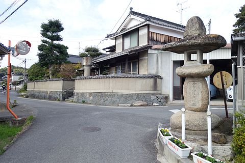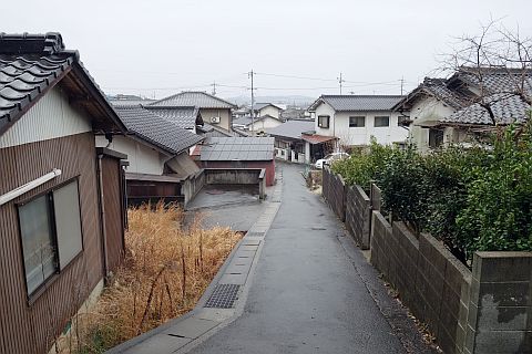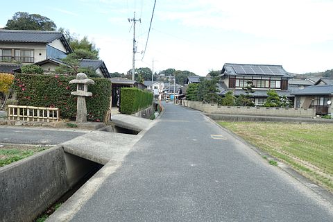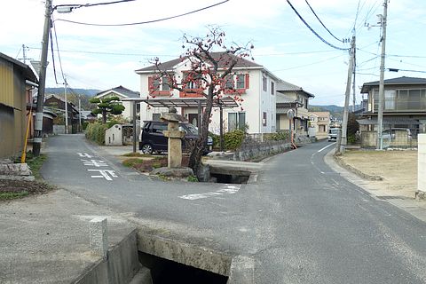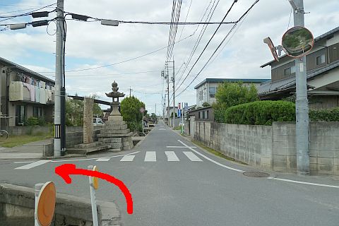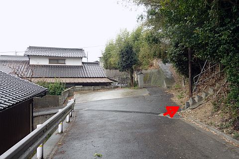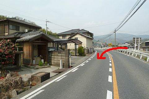 車の場合は鴨方往来に戻り、左折して東へ425m進み、右折して南へ70m上る。