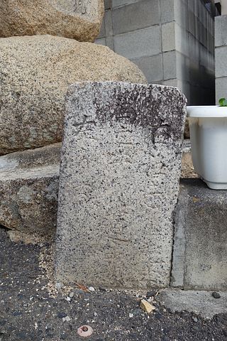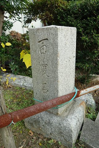 「百度石」「明治三十五年(1902年)八月建之 施主 今城安治郎 石井角治郎 吉沢宗太郎」