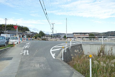 丁字路を左折して橋を渡り、県道35号線を東南東へ50m進む