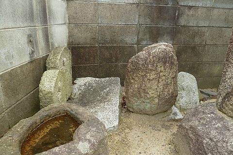 舟形石は中央で破断している。こちらが旧像、となりが新像なのかもしれない。