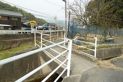 小さな橋を渡り、道口川沿いに北西へ230m進む