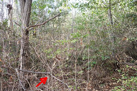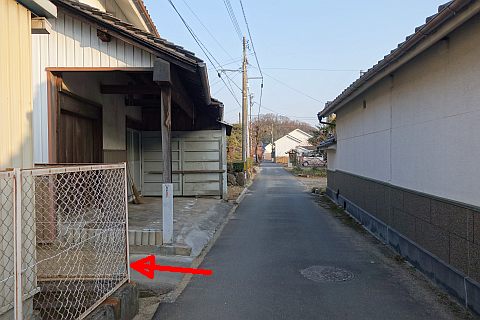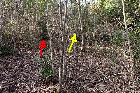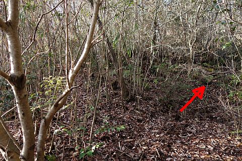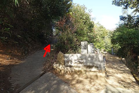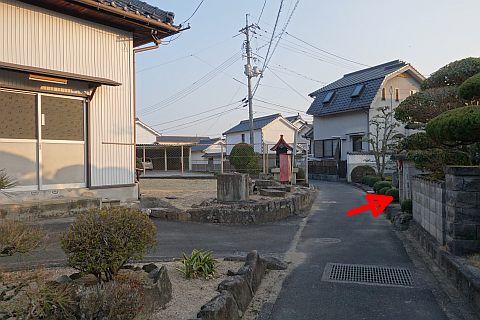参道(赤矢印)から外れてやや右(北)へ13m程進む