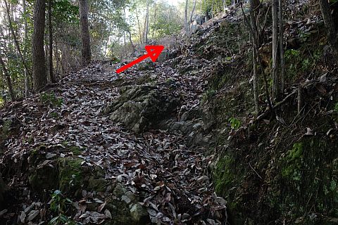 参道は落ち葉に覆われていて判りにくい。足元も悪いので要注意。