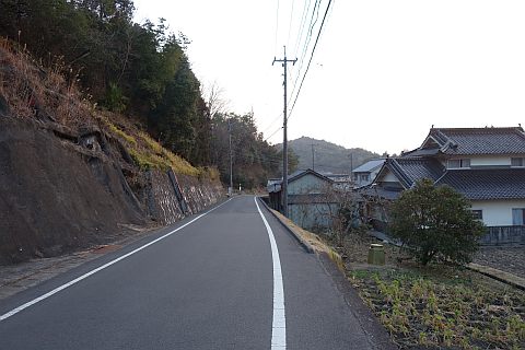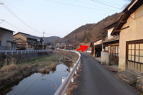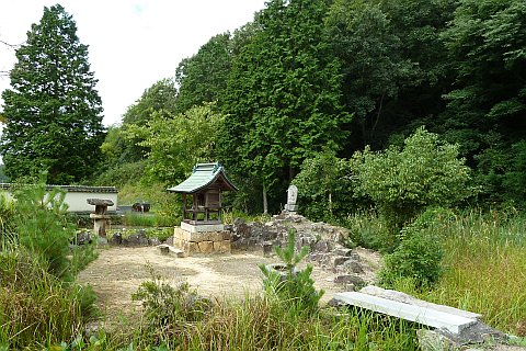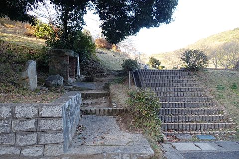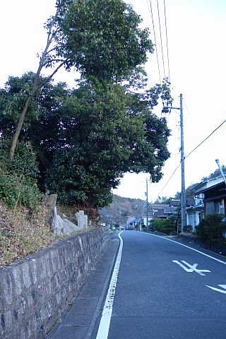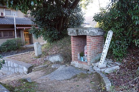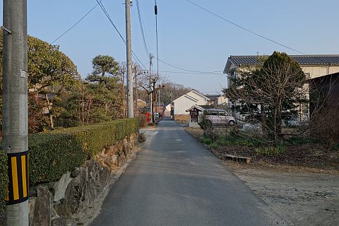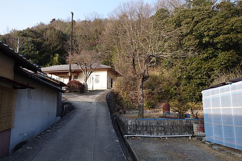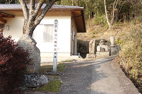東山八幡神社はここから墓地への参道を東北東へ67m上り、左折して北へ上った所にあった