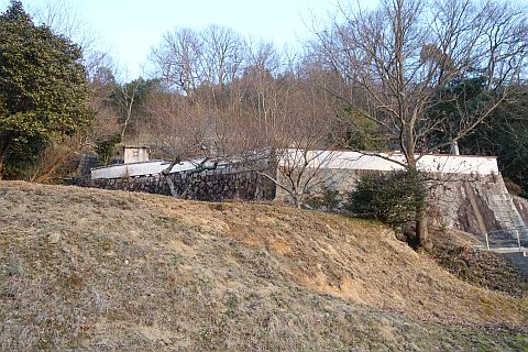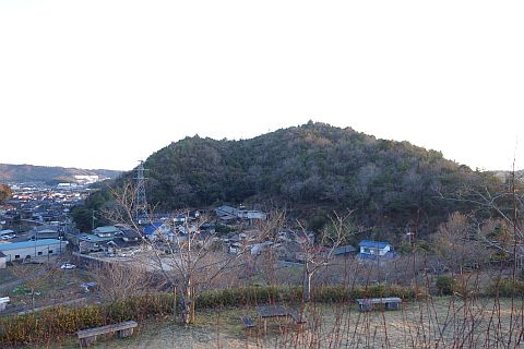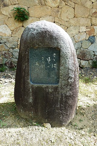 木々の間から僅かに小田川と錦橋が見える。眺望があるのはこの辺りのみ。