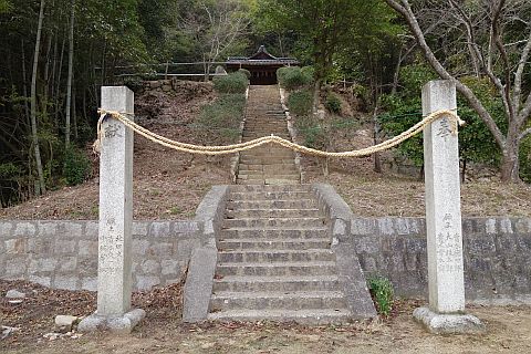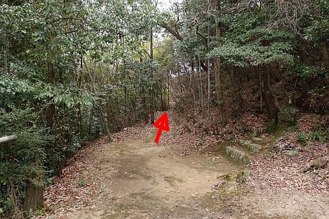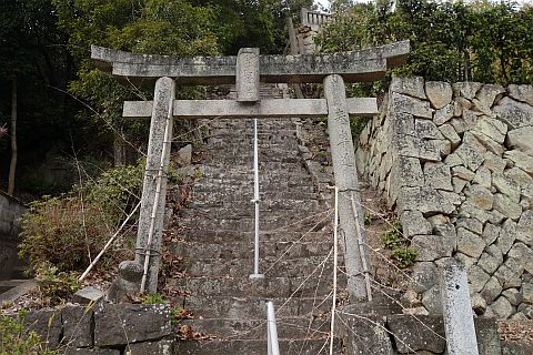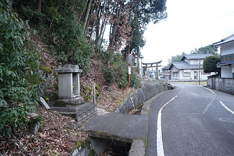 石段の上り口の向かって右にある参道を東へ15m程上る