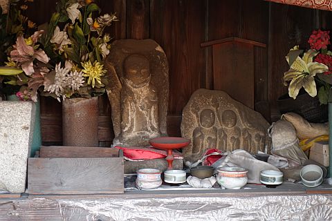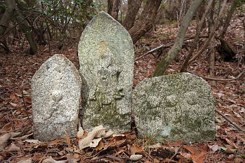 曲水落の地蔵堂(西江原四国23番札所)にも三尊石仏がある