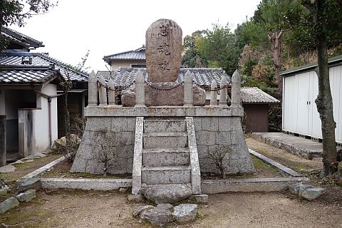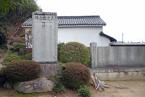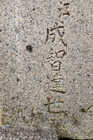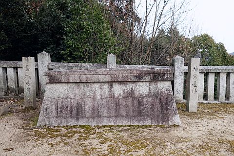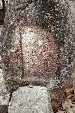(再建記念碑の「上古神功皇后征韓還御之際爲中國平定記念埋寶兜於山頂」部分)