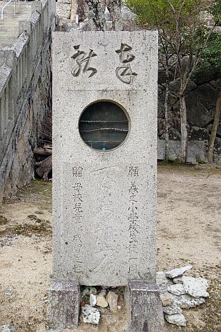 「奉献 百萬度石 願 義之小學校生徒一同 贈 母校兒童*江(小文字の「江」)成智達世」