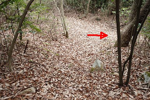 拝殿の向かって左にある登山道を北西へ10m程上る