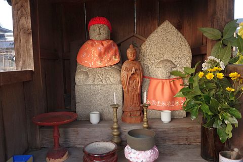 向かって左にあるのはおそらく地蔵菩薩立像と地蔵菩薩坐像