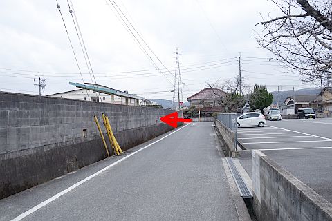 正雲寺前から西へ120m進み、つきあたりの丁字路を左折して南へ280m進む