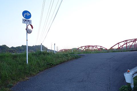 小田川の土手に出て右折し、西へ15m進む