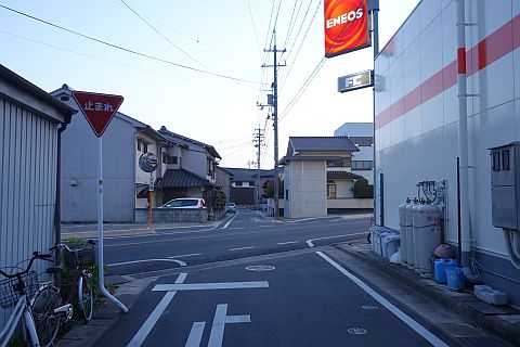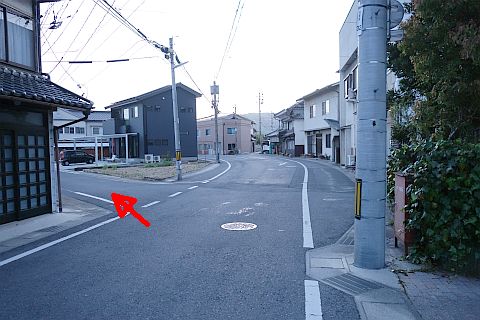 丁字路の手前で右折